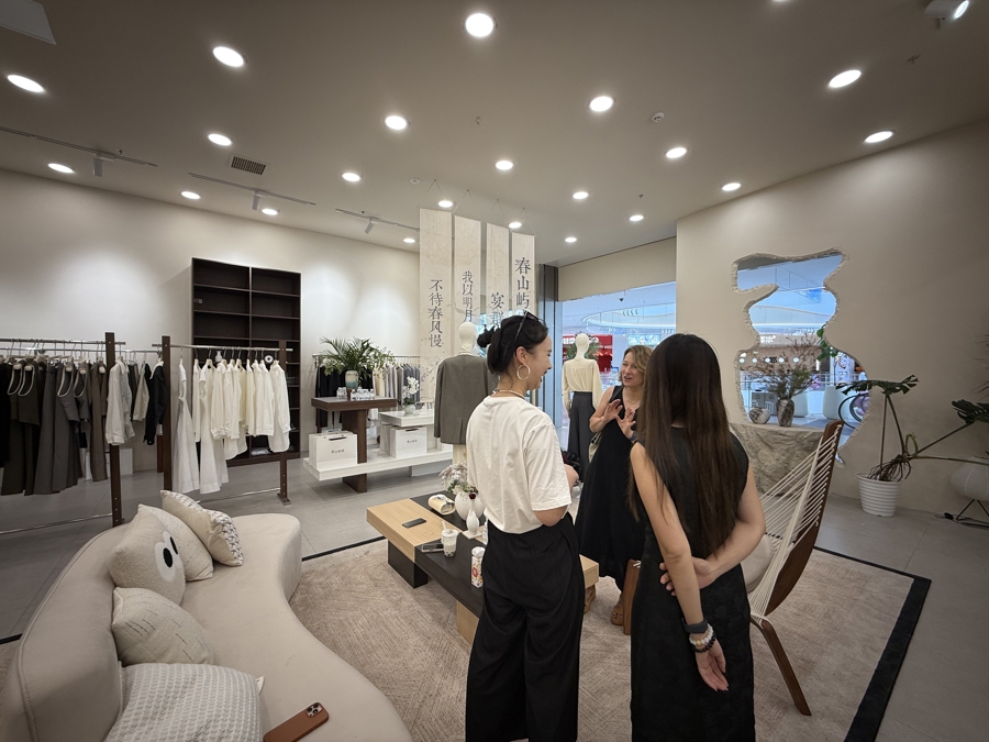 李思锦介绍,在她创联盟的第一次活动上,她遇到了在临港有自己服装工厂的女性设计师赵海霞,同样有志于创业的两人一拍即合,在临港的蓝鲸世界购物中心开出了第一家女装门店。
