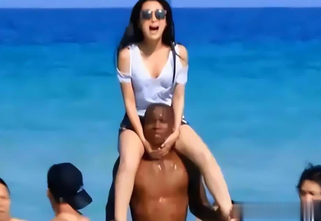 2014年三亚的一组照片引爆网络,她被一个高大的黑人男子扛在肩上,两人笑容灿烂。
