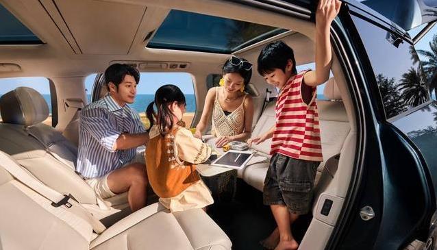 外观设计走大气路线,前脸格栅和贯穿灯组辨识度高,车顶线条悬浮起来,隐藏门把手让侧面看起来干净整洁。电动天地门打开方便,装东西或者露营时省力不少。颜色有几种选择,稳重又带点时尚,商务场合或者家庭出游都搭得上。配置上全系标配了不少实用功能,座椅通风加热按摩、电动门这些都不用额外花钱,诚意比较足。